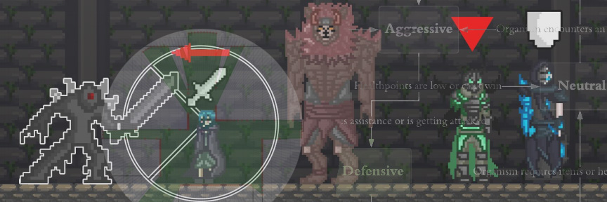 Now, this might not be as easy as I just mentioned, with prior checks and instances seemingly coming out of thin air. It's important to understand the dynamics within your game and plan the AI around that. I found the concept of having distinct stances much easier to plan around, even if I were to replicate it and not allow the player to control them, I'd adopt the stances automatically based on certain values within the game world and just keep them hidden, somewhat similar to aggroing mobs in any MMO with them going from peaceful, to angry - chasing the player, and finally to either dying or losing aggro if the player gets too far.