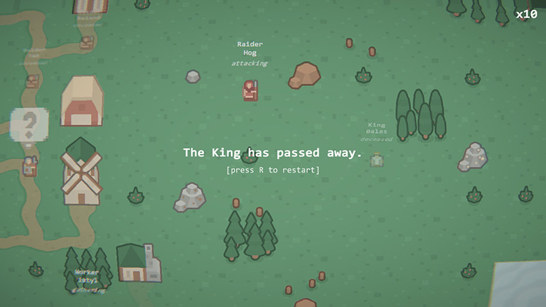 and vastly distinct ways. There is currently no win or lose condition but upon losing your King the game slows down and requires a reset to witness a new iteration of the world.