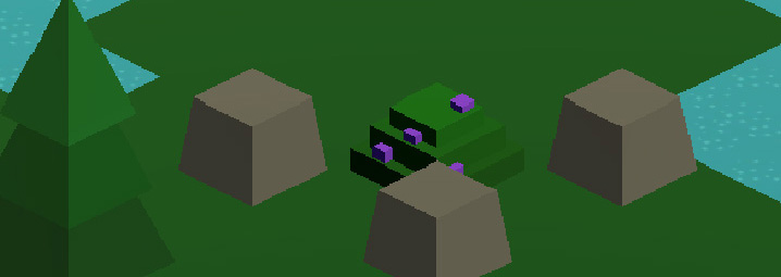 To implement a simple PCG into Unity we create some prefabs with various variables and just place them around. A simple way we can add complexity to this design is assigning each item at least two or three different objects, and upon instantiating leaving one active at random. This can further be expanded by assigning seasons and passage of time, potentially even having the trees change colour as the years go by. To start, create a simple "for" loop, running through the width and height of the grid, and adding a terrain prefab in each spot. In order to add variety, create a random number generator to determine what prefab to create in each coordinate, as well as some checks to allow water or certain collisions to not occur.